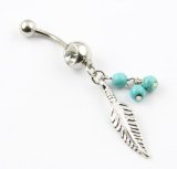 316L Surgical Steel 14 Guage Leaf Dangle With Blue Beads Navel Belly Button Ring Bar BodyArt 72 days in the