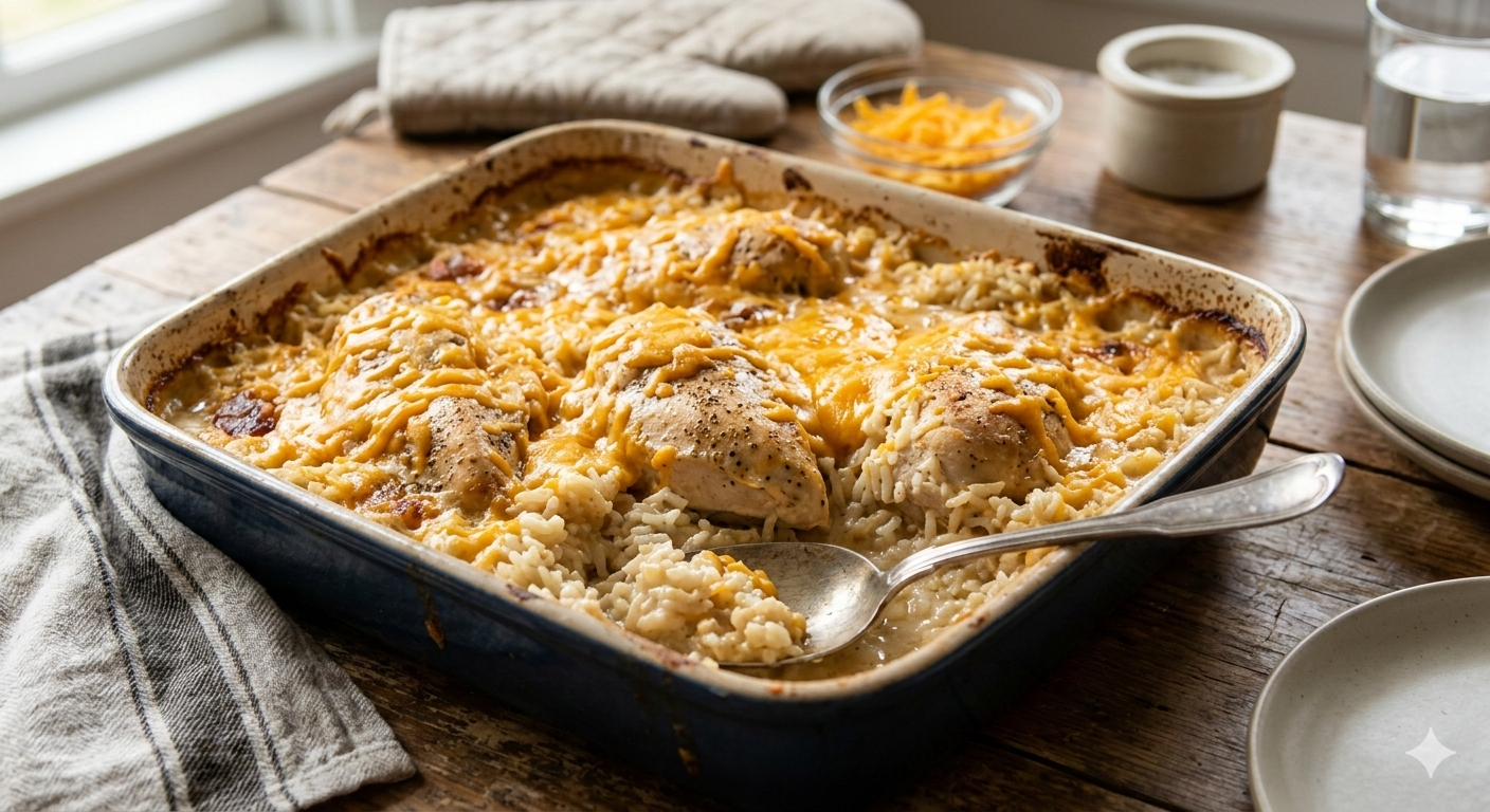 The rice cooks right in the creamy sauce while the chicken bakes on top, creating a flavorful, comforting dish the whole family will love. The best part is that everything comes together in one pan, making cleanup quick and easy.